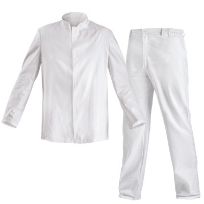 Машко и женско дводелно работно одело во бела боја, по ХАСАП стандард. Блузата се закопчува со помош на чичак лента, внатрешни џебови. Машките панталони имаат патент и џордан учкур, а женските само џордан учкур. Панталоните и блузата се спакувани одделно. Оделото е изработено од квалитетен памук (100% памук, 200 g/m2 ) којшто е паропропустлив и лесен за одржување - може да се пере на високи температури и лесно се пегла. Погодно за употреба во прехранбената индустрија, фармацевтската индустрија, медицината, во кујни, аптеки и сл.